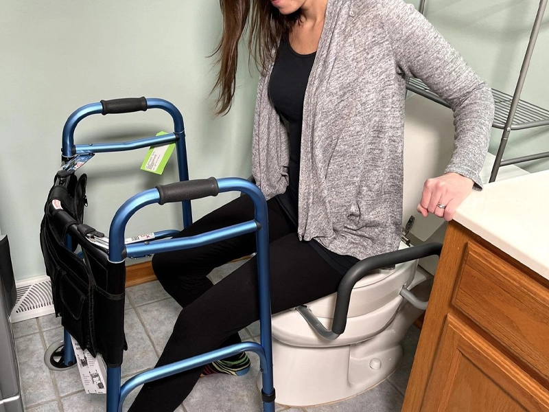 در هفتههای اول، بهتر است همیشه با واکر یا عصا به سمت توالت بروید و در صورت امکان یک نفر کنار شما باشد تا اگر تعادلتان به هم خورد، کمکتان کند.